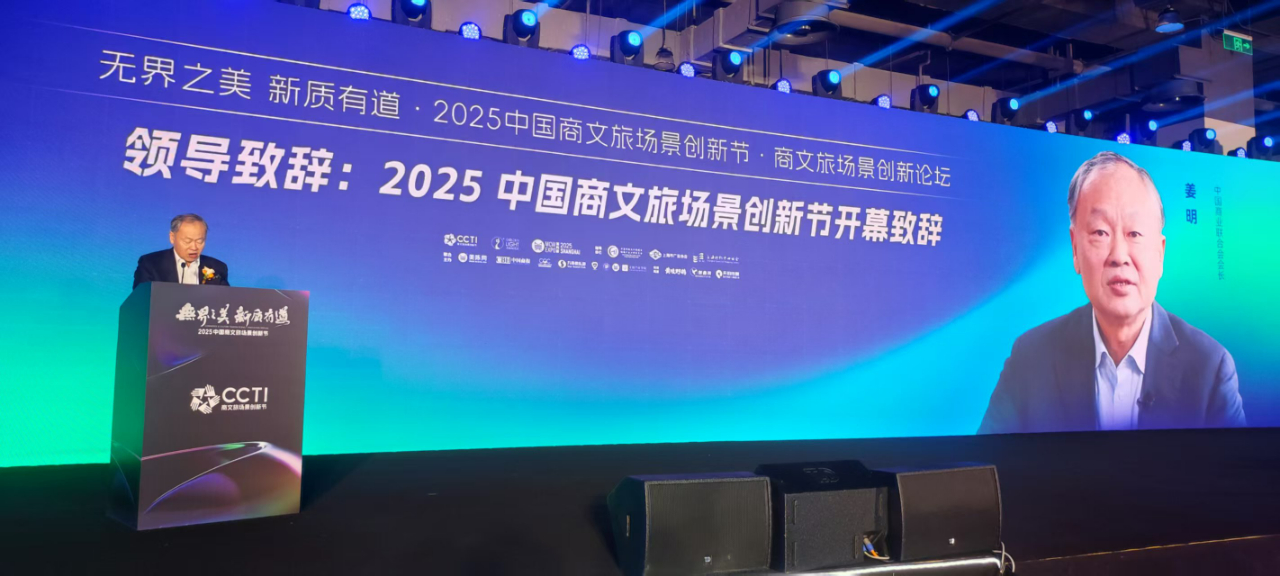 中国商业联合会党委书记、会长姜明为2025商文旅场景创新节暨第十届美陈展带来开幕致辞。