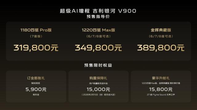 31.98万元起 超大尺寸 标配四驱 吉利银河V900开启预售