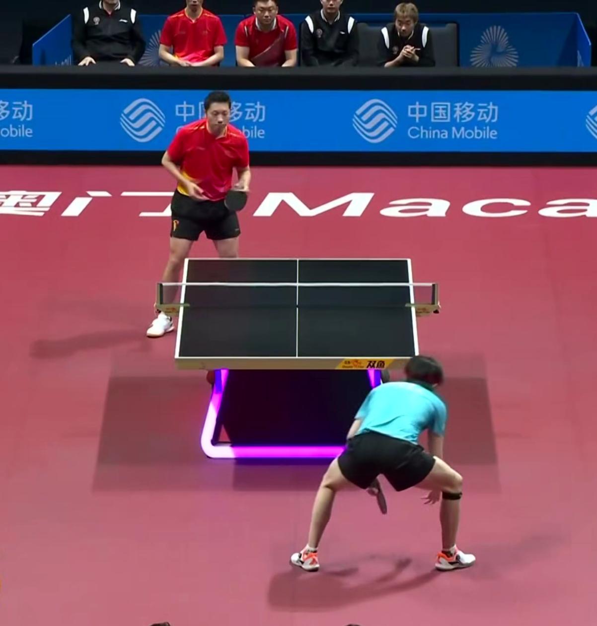 来看一下第四盘比赛:第一局,王楚钦迅速上手,而许昕也是继续打出他标志性的“后背击球”,但是没有成功。整体来看,更年轻的王楚钦,冲击力极强,他也在积极抢开局。