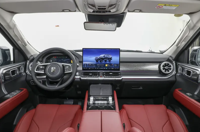 内饰是新款坦克400的升级重点。新车换装大尺寸方形悬浮中控屏,并采用怀挡设计,释放了中控台下方的空间。
