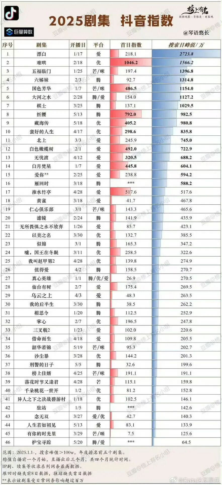 抖音1892.5万的首日指数断层领跑年度榜单,同期大结局的《赴山海》连嘲讽的声音都听不到了。