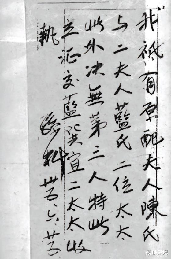 婚后,两人情感如胶似漆,孙科给蓝妮写了一张纸条,上面写道“我只有原配夫人陈氏与二夫人蓝氏两位太太,此外绝无第三人。”