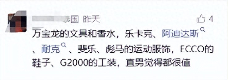 比如一位定位在泰国的网友,直接列出了大批大牌商品,直言作为直男都觉得很值。