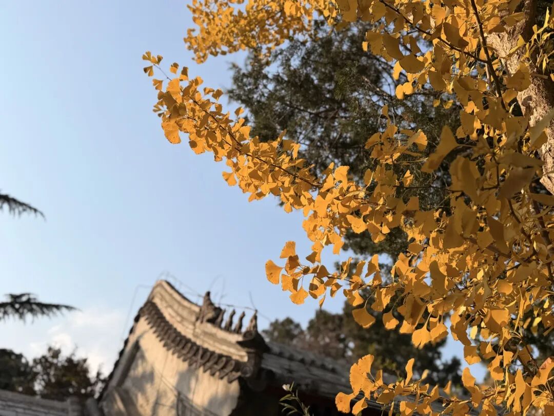 位于八大处四处的大悲寺,两株古银杏树也进入了最佳观赏期。满树金黄,落叶铺满整个院落,似有银杏撒“金”映古建的美好意境。