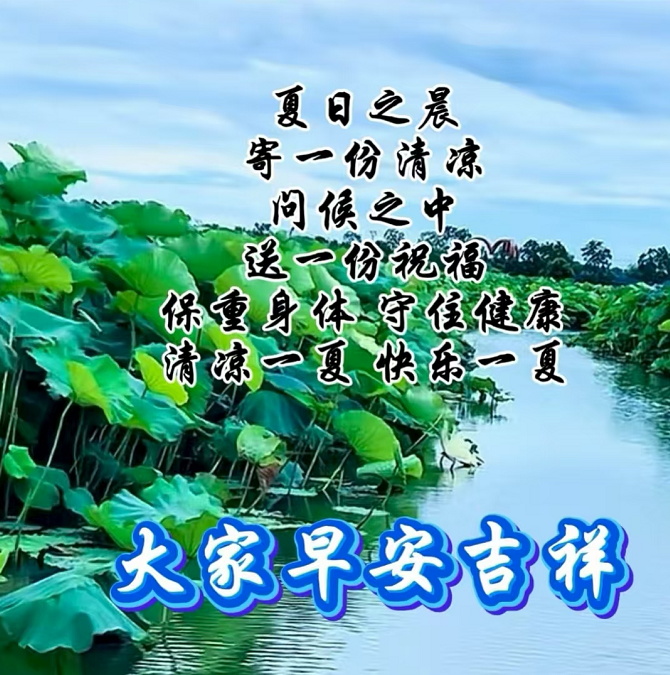夏日炎炎🌞,三伏天气来袭!愿你在这个炎热的季节中,身体健康,心情舒畅,愿清风伴随你,给你带来一丝丝凉爽的感觉,度过一个愉快而舒适的三伏时光!清新的清晨,送去我深深的问候与祝福。愿人生之路洒满阳光,身体无恙安康,心情惬意如诗,日子如繁花绽放,每天都笑意飞扬、如意吉祥 。早上好!