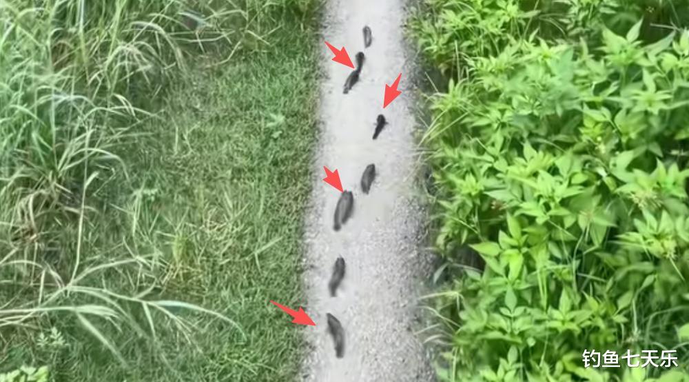 过山鲫会爬行,这一点大家应该都清楚。但我是第一次看到有几十条过山鲫,就像是受过训练一样,一起从鱼塘里跑出来,在路上爬行。