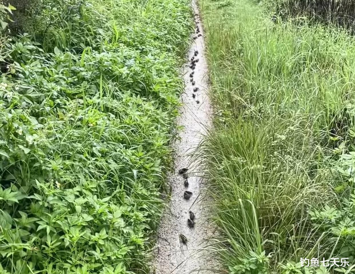 近期,广东汕头一位网友,在乡下一处池塘边发现奇怪一幕:一场大雨过后,几十条小黑鱼正慢慢地顺着塘边的小路,朝着一个方向爬行。