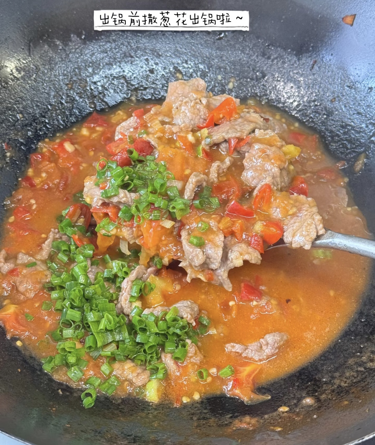 最后撒上一把葱花点缀,就可以关火出锅了。盛出时连汤带肉一起倒入大盆里,红亮的汤汁裹着滑嫩的牛肉,翠绿的葱花点缀其中,光是看着就让人食欲大开。