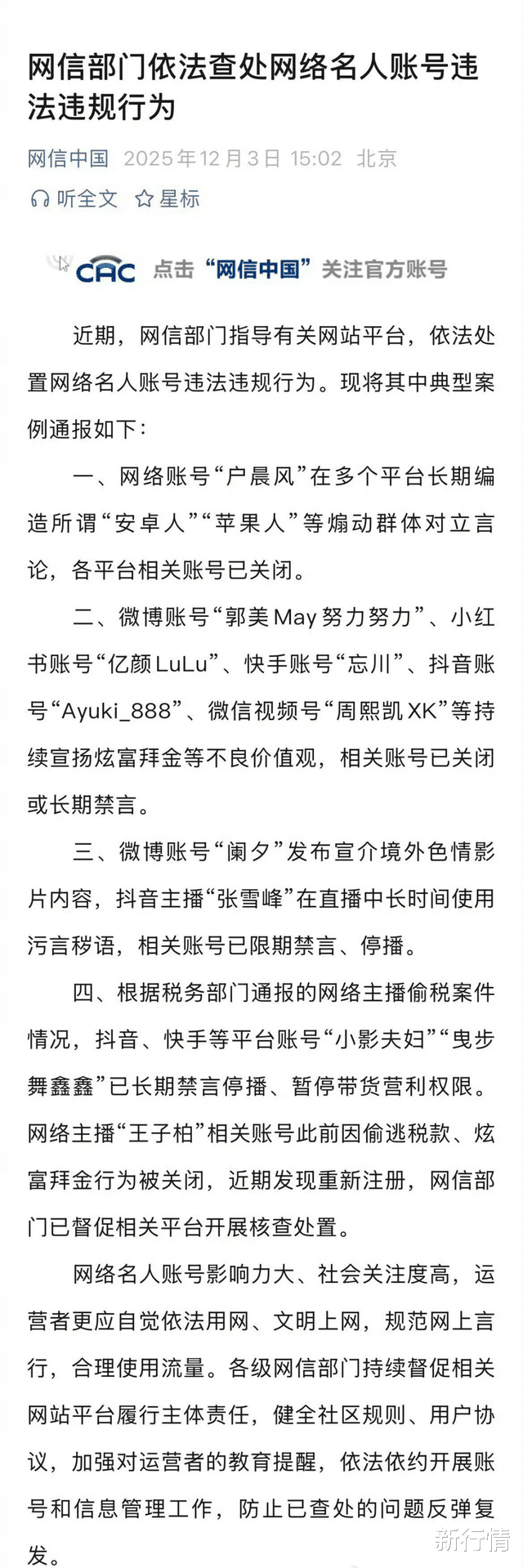 近期,不少网红的账号被依法处置。