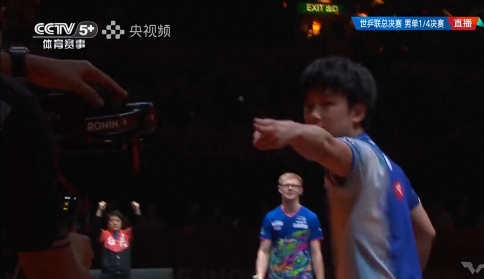 今天(12月13日)下午,张本智和以4-3险胜费利克斯·勒布伦晋级WTT年终总决赛男单四强。在决胜局中,张本智和以11:9逆转取胜。取胜后,张本智和欣喜若狂,再次模仿自己的偶像樊振东做出全运会庆祝动作。