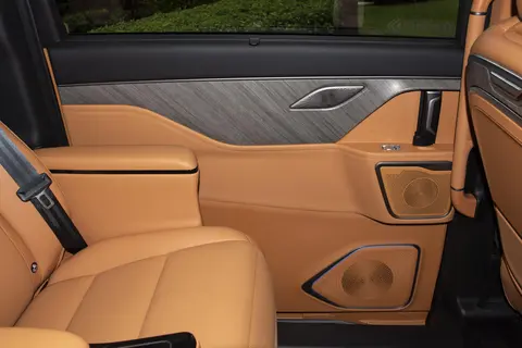 座舱的智能化设计也很贴心。12.3英寸的2K液晶仪表、双15.6英寸2.5K中控与副驾屏、17.3英寸3K后排娱乐屏,再加上26英寸的Coffee SR-HUD,形成了五屏联动的效果。所有屏幕都通过了莱茵低蓝光和无频闪认证,长时间看也不容易伤眼,后排孩子看动画时家长更放心。SR-HUD的成像距离有4米,能实时模拟外界交通环境,驾驶时不用频繁低头看仪表,安全感更强,休闲时还能切换影院模式,提升乘车乐趣。