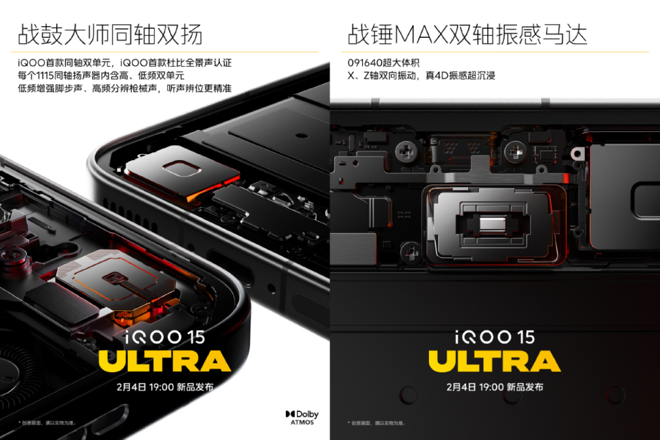 同时,该机还首发超感触控肩键,拥有行业领先600Hz肩键触控采样率,搭配双独立控制芯片,指令单独传输,实现极速响应,还iQOO首发「战鼓大师同轴双扬」+iQOO首款「杜比全景声」认证和战锤MAX双轴振感马达。