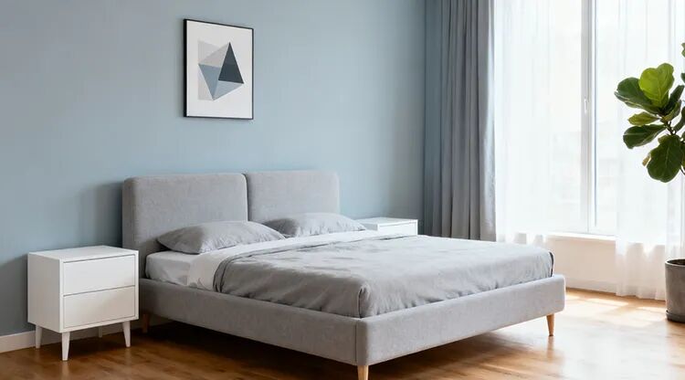 床头最好靠实墙,不要悬空或对着门,这样不仅有安全感,也利于睡眠质量。