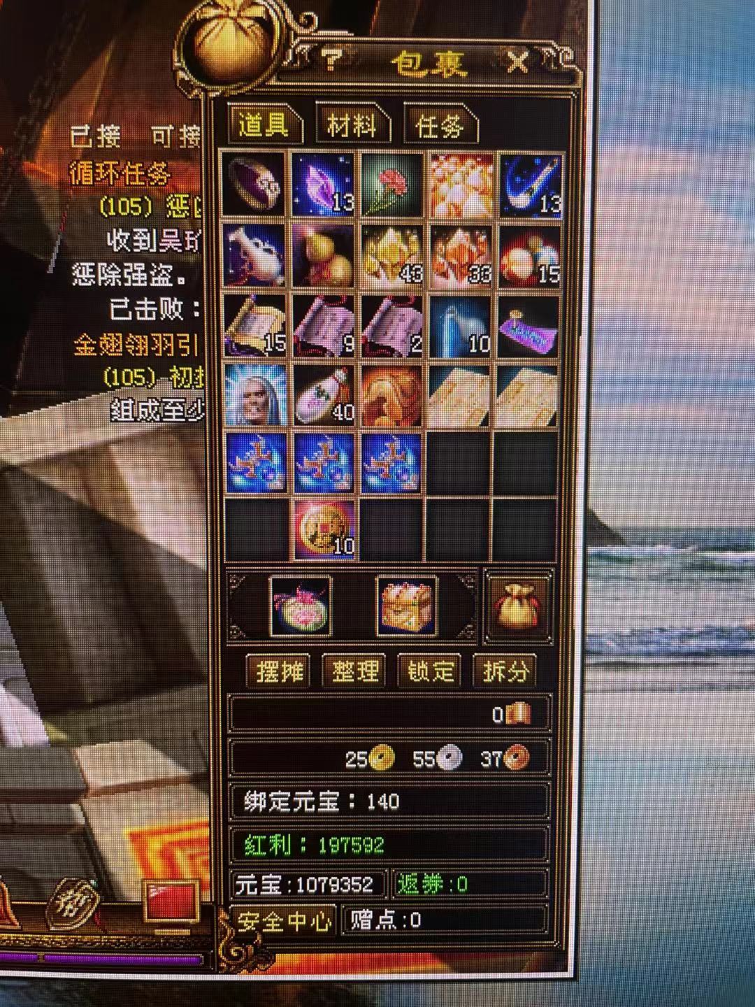 1. 首先上线先做任务升级到40,(有脚本得直接挂到40级,脚不会用得可以联系群管理牙印)