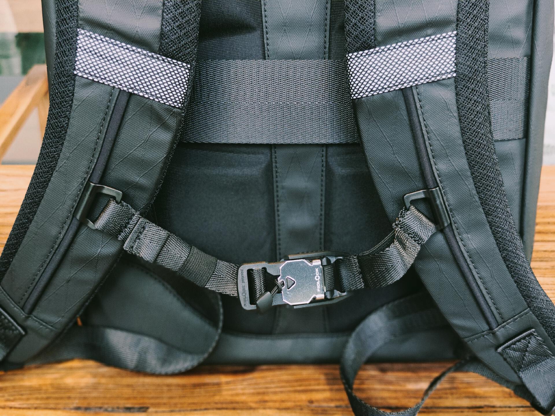 这款背包在整体的用料方面也是非常到位的,除了采用了户外级SPU防泼水涂层面料,以应对户外多变环境和方便打理以外,甚至定制的YKK拉链都有着防泼水涂层,开合丝滑还防水。顶部用来固定上盖的两侧锁扣和胸带的固定锁扣则全都采用了德国的FIDLOCK磁吸扣具,玩户外或者军事的肯定都很熟悉,也都知道这看着不起眼的磁吸扣具价格多么感人……