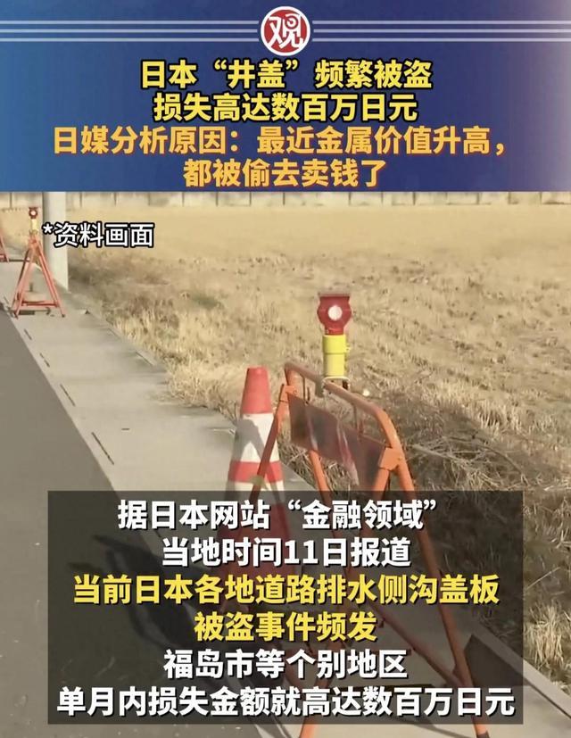 据日本网站报道,当地时间1月11日,日本多地出现井盖被盗现象,有些地区一个月就损失数百万日元,都是出自井盖被盗。