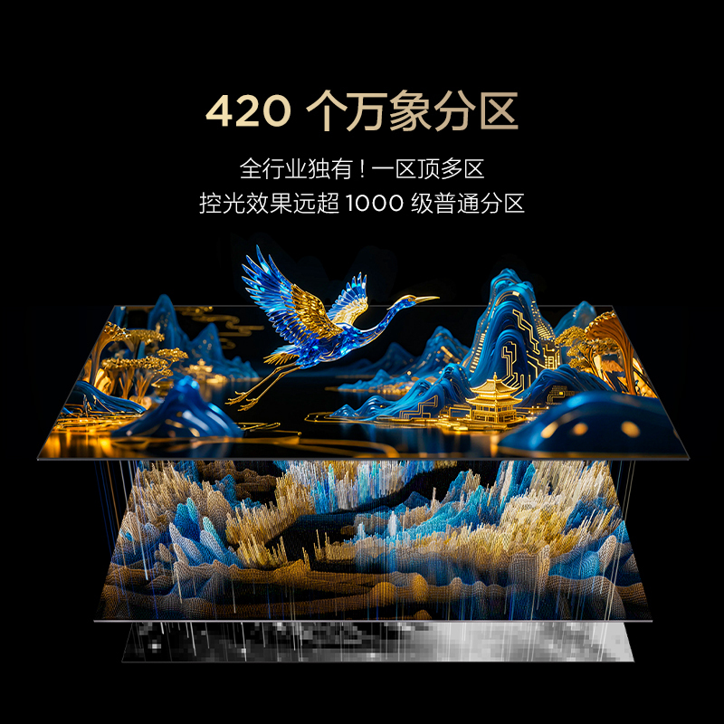 先说说最影响追剧体验的画质吧。之前用的老电视,看那种暗场景多的剧特别闹心,比如追“黑暗荣耀”的时候,文东恩在暗室里的镜头总像蒙了层雾,连她眼神里的情绪都看不清;看“庆余年2”的朝堂戏,亮部的龙袍又晃得眼睛疼,得时不时眯着眼看。而鹤6 26款带的万象分区,是真的解决了这个问题。它有420个万象分区,实际控光效果比那些吹1000级普通分区的还好用,再加上专门的聚核光芯发光芯片,发光效率提升特别明显,亮度比上一代还高了10%,从而画面也会更显通透,视觉沉浸感更强。