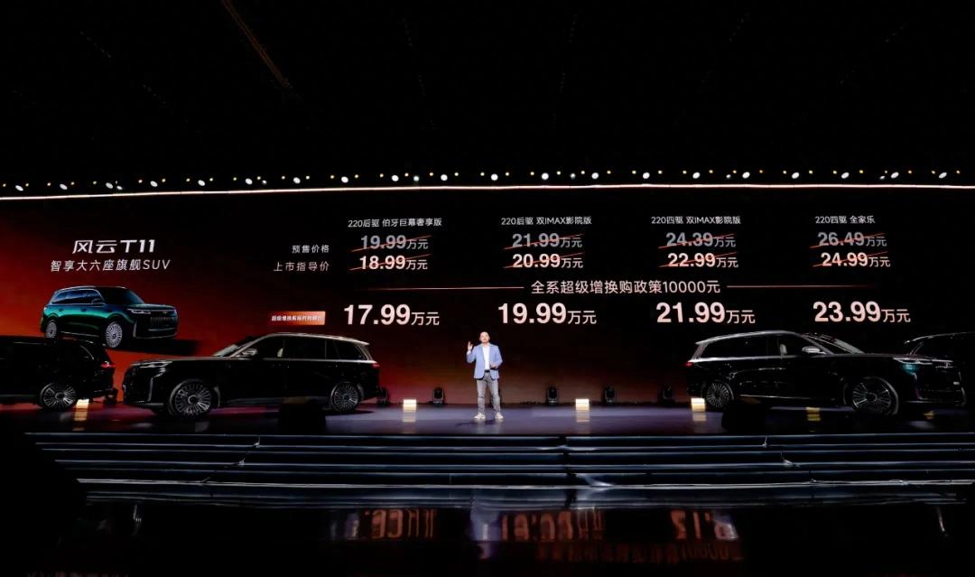 10月30日,风云T11正式上市,唯一悬念就是如此卷的9字头市场里,会比预售价低多少?之前预售时已经把压力给到了深蓝S09和银河M9,这次能不能更激进一些、再卷一把?结果是定价凶狠程度比预期低1万都还多,是直接低1万,而通过提供1万置换补贴,形成限时抢鲜价17.99-23.99万元,4个配置平均比预售低2万之多。