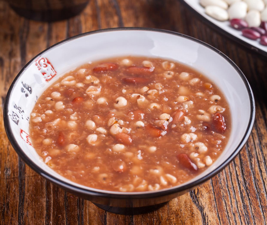 八宝粥从不用现成配料,挑豆子是第一道学问,红豆必须选一面白一面红的花酱豆,掺进的普通红豆绝不超过三分之一,十斤花酱豆洗净沥干,倒进锅里加入十三斤清冽的水能煮出不红亮色泽。