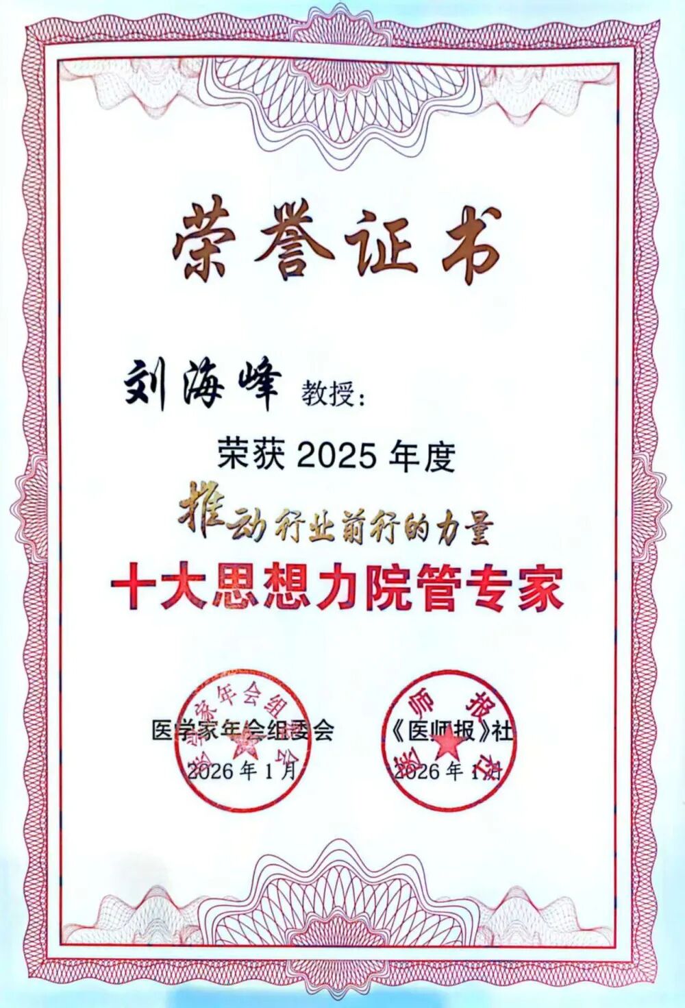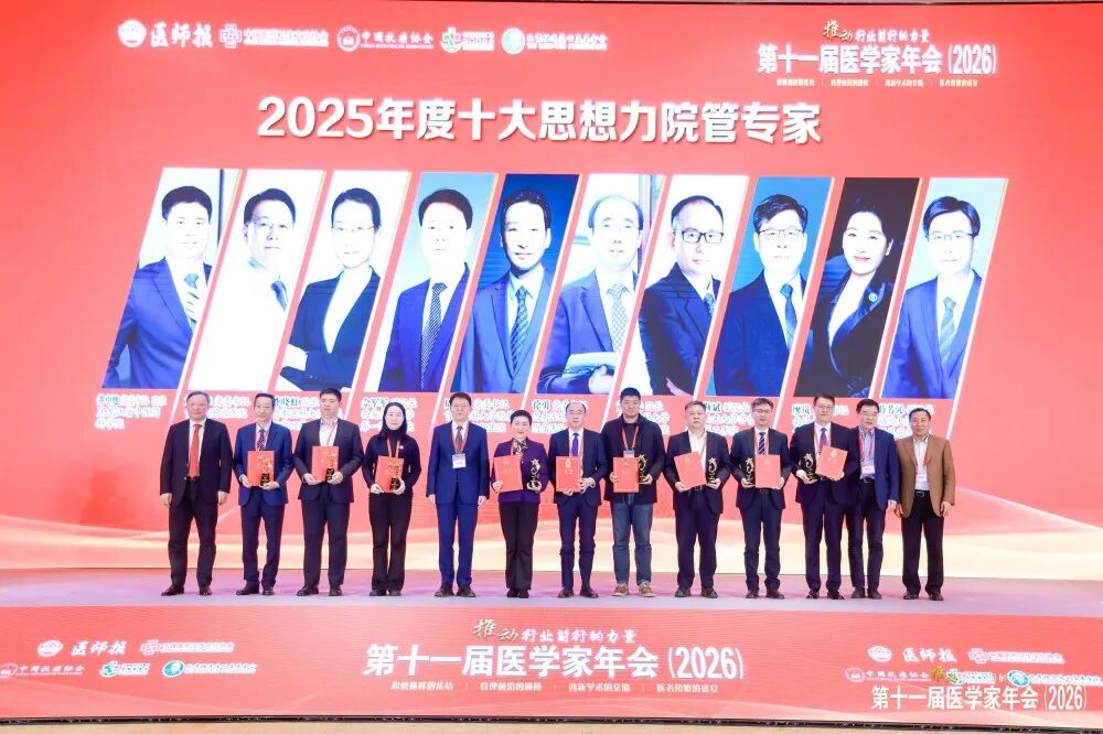 2026年1月8日至10日,以“聚焦医疗高质量发展,共筑健康中国新蓝图”为核心主题的第十一届医学家年会在北京隆重召开。作为国内医疗卫生领域极具影响力的年度盛会,本次大会汇聚全国顶尖医院管理者、学科带头人及科研专家,围绕“医学数智化、健康现代化”共商发展大计、表彰行业标杆。吉林省肿瘤医院党委书记刘海峰受邀出席,凭借在肿瘤医学科研创新与医院治理体系建设中的卓越成就,荣获“年度推动行业前行的力量——十大思想力院管专家”称号,并受聘担任《医师报》现代医院协同治理频道副总编辑,其专业贡献与管理智慧赢得全国医疗行业高度认可。