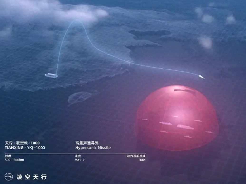据介绍,“驭空戟-1000”最大的射程可以达到1300公里,飞行速度可以达到5个到7个马赫。它还可以实现水漂式的滑翔,让对手的防空体系难以预测它的轨迹,甚至在末端还能进行机动变轨。它打击的目标可不光都是固定目标,还可以对海上移动目标,在上千公里之外就可以进行打击。