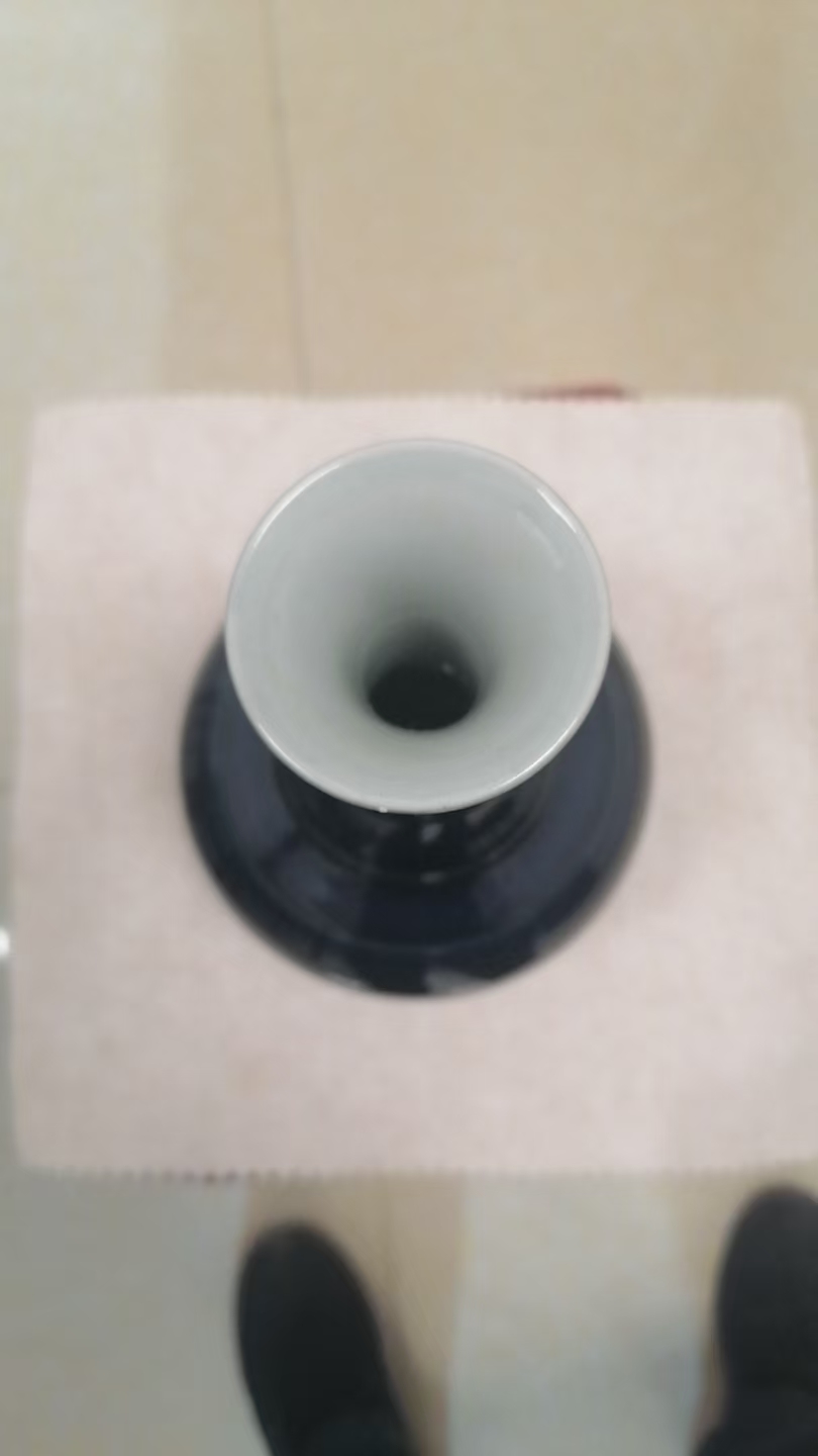 收藏价值:康熙霁蓝赏瓶存世稀少,兼具 “名窑、名釉、名器型” 三重属性,是单色釉收藏领域的 “硬通货”。其完整的器型、匀净的釉色,每一处细节都是清代制瓷工艺的鲜活标本。