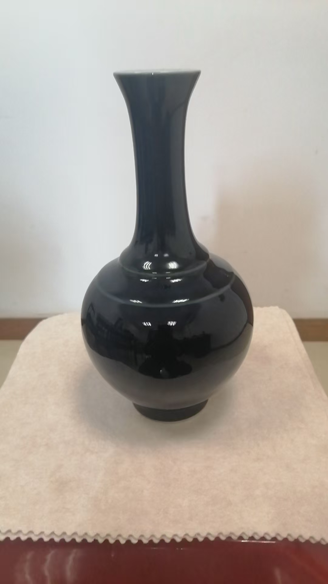 色泽之美:釉色如深海幽蓝,似晴空暮霭,浓艳均匀却不失温润,在光线下泛着宝石般的釉光,纯粹得令人心醉。这种 “以釉色为画” 的审美,是单色釉瓷器的精髓 —— 无需繁纹饰,仅靠釉色本身的质感与层次,便能演绎出极致的视觉张力。
