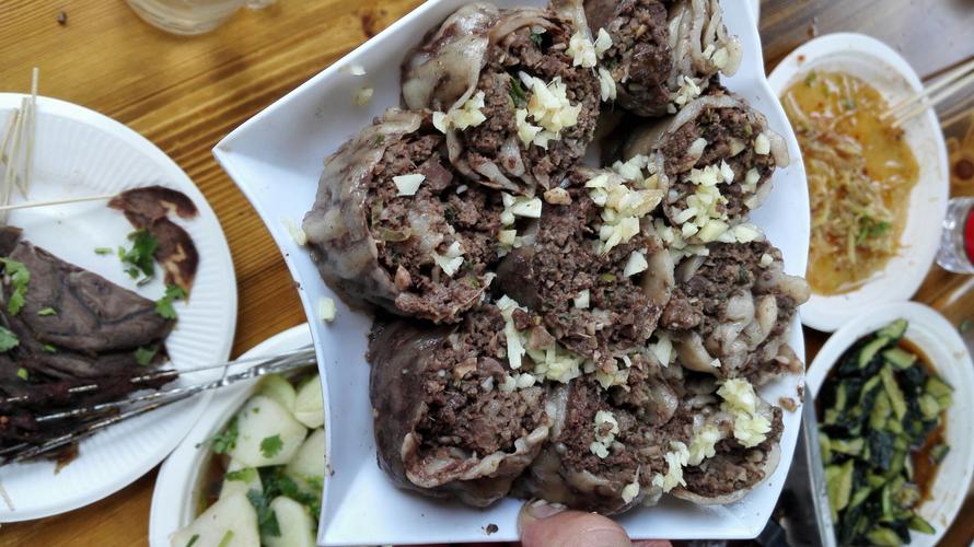 制作羊筏子的方法相对特殊,可能与外地人的饮食习惯不太相符,因此对于一些人来说可能存在心理障碍,不敢轻易尝试。通常,制作羊筏子需要先将新鲜的羊血凝固后切成块状,再用羊肠将其包裹起来。最后,将羊筏子放入锅中煮熟,煮至羊血凝固,羊肠变得韧性并保持鲜嫩。