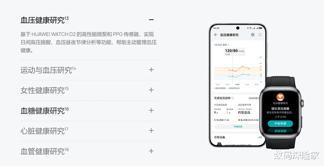 解决了血压管理的核心难题后,华为WATCH D2的健康守护力还进一步延伸,以“全面健康管理”为核心,成为覆盖全人群需求的腕上健康专家。它不仅是高血压用户的“专属管家”,更是全家的健康守护者:一键微体检已升级至13项,指尖轻触就能快速筛查心率、血氧、压力等关键指标,日常出现头晕、乏力时,能第一时间排查基础健康问题;作为业界首个支持高心率运动后测量血压的腕表,它还带来全球首创的运动与血压研究,运动爱好者无需担心运动后血压骤升的风险,手表能实时捕捉变化并给出提醒;此外,它还覆盖血糖健康研究、女性健康研究及多项全天候健康监测,比如夜间睡眠呼吸暂停监测、心率失常预警,从青少年的睡眠管理到女性的生理周期关怀,再到老年人的慢病监测,不同人群的健康需求都能被满足。