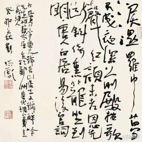 不过抛开一切消极、自卑思想的左右,怀素和刘洪彪先生还是可以进行一些比较的,毕竟刘洪彪先生作为当今中国书坛大草领域的领军人物之一,对怀素的继承和发展还是对书法的未来产生根本性影响的。