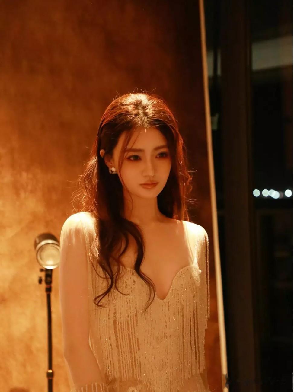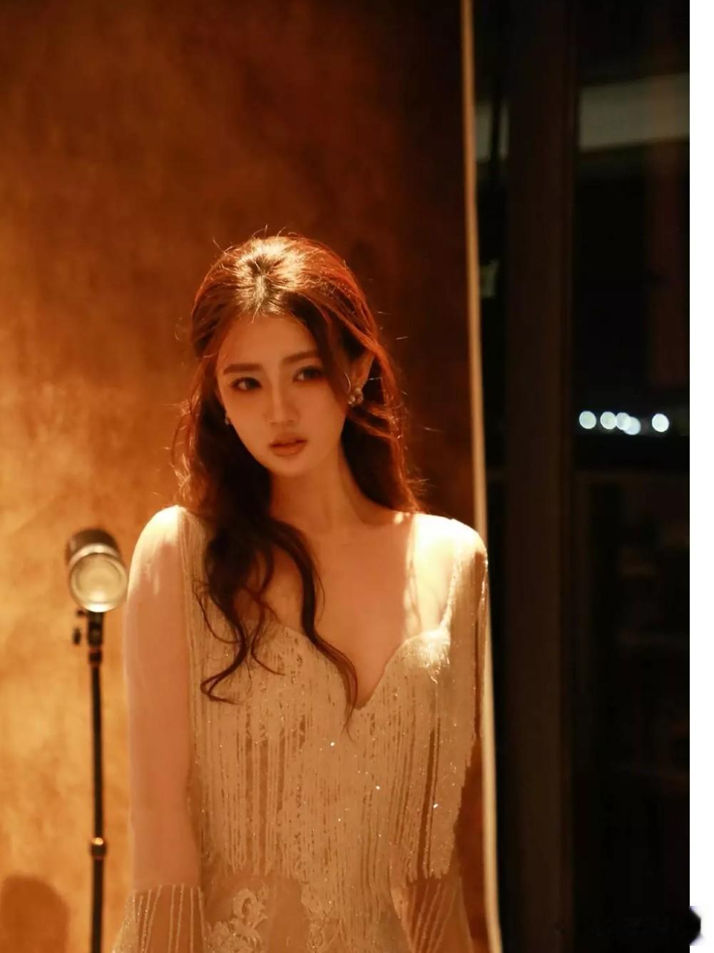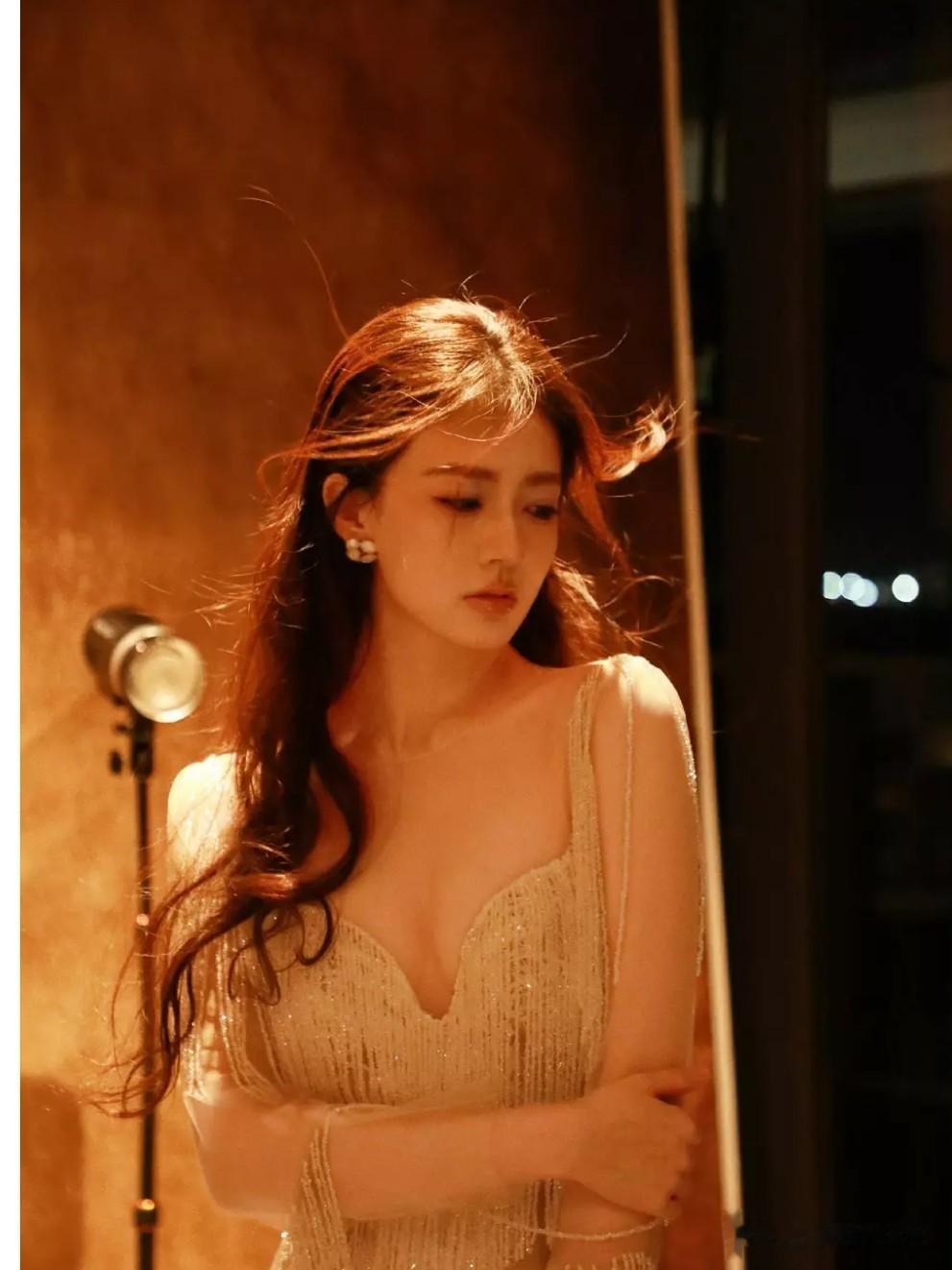 镜头下的徐璐,将江南美人的神韵诠释得淋漓尽致。她微微侧身时,流光裙的光泽顺着身体曲线流淌,宛如西湖水面的波光映着岸边的垂柳;抬手整理卷发的瞬间,指尖轻触发丝的温柔,恰似江南女子轻捻花枝的娇态。这份美并非刻意的雕琢,而是她与造型的完美契合:流光裙的现代质感,遇上她骨子里的古典温婉,碰撞出了超越时空的美感。有网友评论:“她不是穿着裙子,而是把江南的烟雨穿在了身上。”