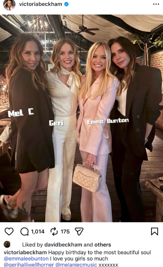 四个人久违重聚并一起合影,引起网友满满的回忆杀!当年她们可是红极一时的辣妹组合,贝嫂是其中一员,那么多年过去了她们风采依旧。