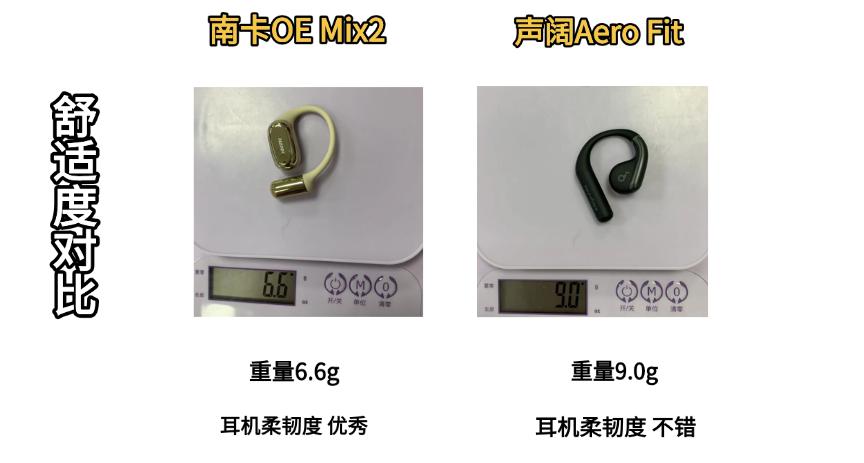 对于开放式耳机而言,佩戴舒适度是决定其是否值得拥有的首要前提。若耳机存在明显压迫感或容易滑落,便难以满足日常使用的基本要求。理想的舒适感通常源于三大要素:足够轻盈的机身、亲肤柔软的材质,以及与耳廓高度贴合的工学结构,这些共同成就了近乎无感的佩戴效果。在本次评测中,我们将从以上三个维度出发,通过精准的重量测量、材质,并结合多人长时间实际佩戴反馈,来系统评估并对比各款耳机的舒适性表现。