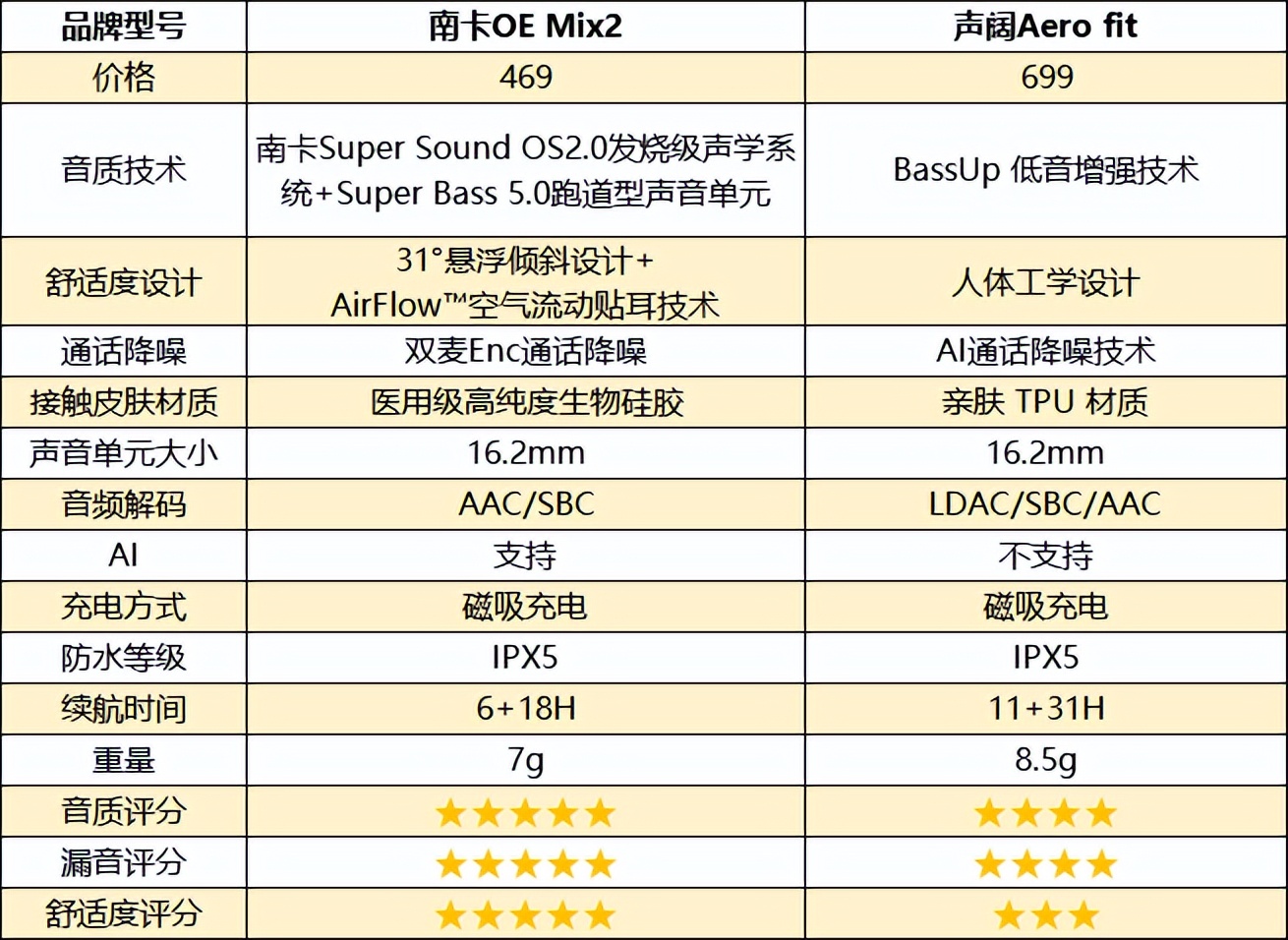 在本次对比中,两款耳机各具特点,但南卡OE Mix2凭借更全面的综合表现脱颖而出。其在佩戴舒适性、声音保真度与漏音控制等关键体验上均达到优秀水准,同时还融入了实用的AI交互功能。这类配置多出现在更高价位产品中,使其在同档位中展现出显著的性价比优势。