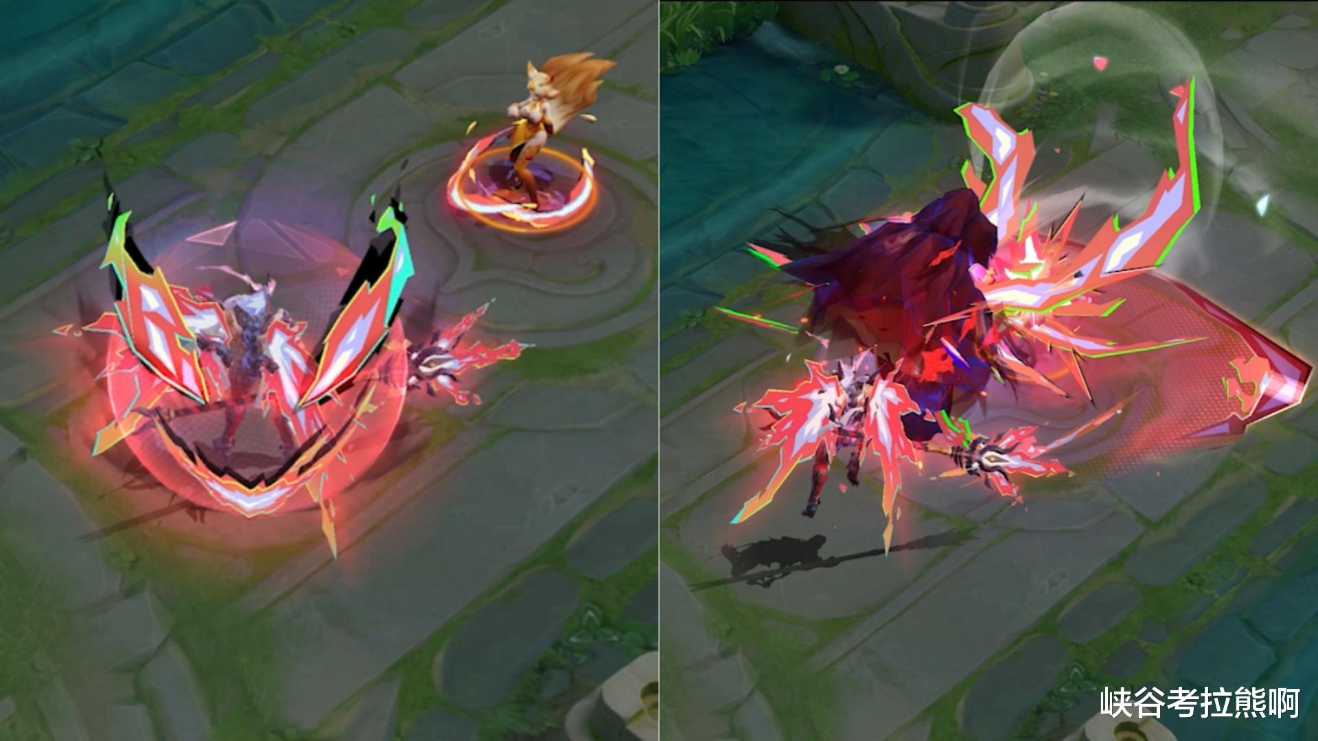对比来看这个双形态特效质量确实上乘,时隔一年的等待没有令大部分玩家失望,至于我为什么这样说,也是因为这款皮肤的风格性太强,确实会有部分玩家不喜欢这种二次元风格。
