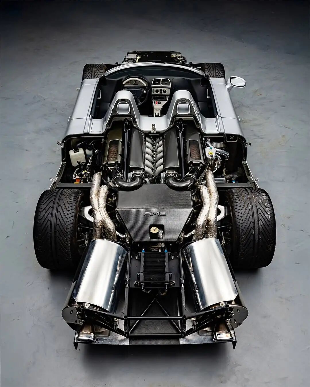 我们还是聚焦这台车。后舱盖下是一台6.9升V12发动机,可以输出604马力(450千瓦)的动力和775牛·米的扭矩。动力通过一台序列式六速手动变速箱传递给后轮。