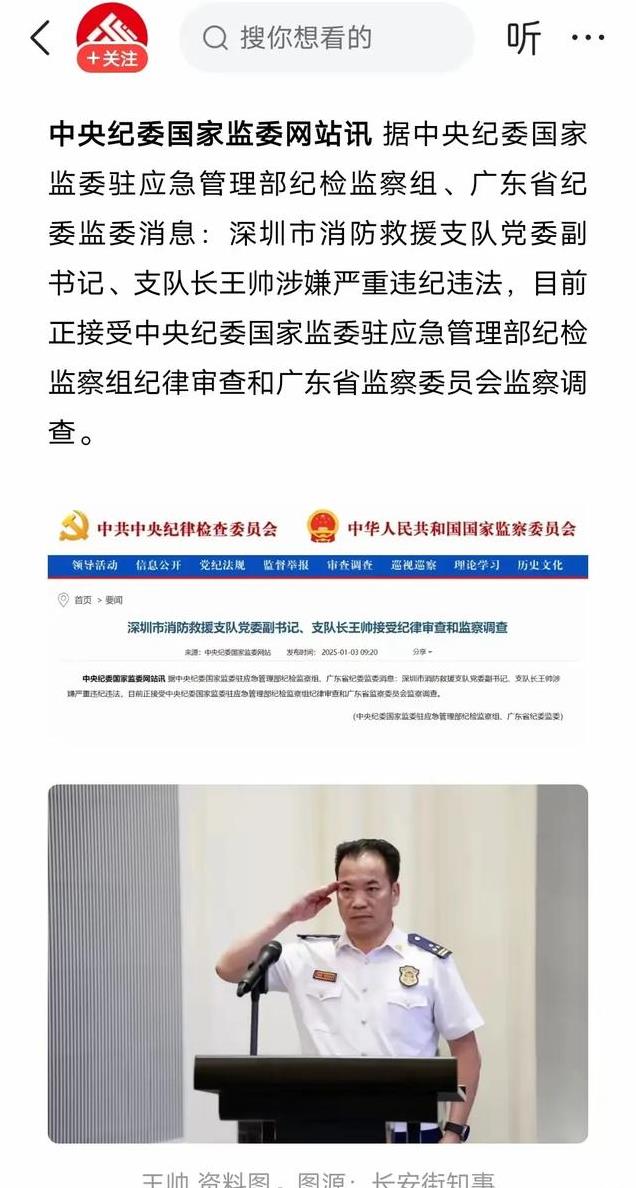 深圳消防救援系统迎来新变革,一则消息引发社会广泛关注。1月3日,广东省纪委监委发布通报,深圳市消防救援支队党委副书记、支队长王帅涉嫌严重违纪违法,目前正接受纪律审查和监察调查。