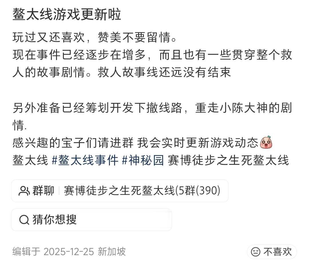 而目前的《生死鳌太线》,或许还只是个初期成品——神秘的鳌太线,它的故事太多了。相应的,游戏能补充增加的内容也还有很多,其中包括但不限于:下撤相关分支(目前玩家不可以选择和陈眸放一起下撤);开放卫星电话购买(目前商店显示缺货,碰到远山时,其中一个选项是用卫星电话呼救,但现在无法选择);提升初始预算……