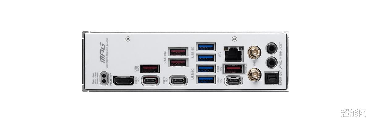 主板背部I/O提供丰富接口,包括USB 20Gbps Type-C和多个USB 10/5Gbps接口,还提供了5G网口,满足外设扩展和连接的需求。