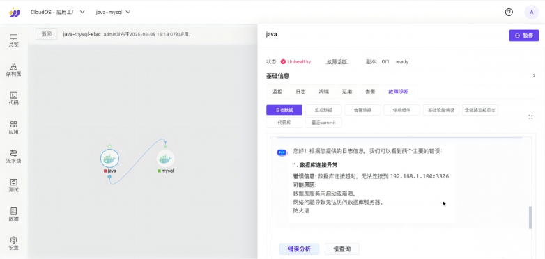 【CloudOS产品演示图】 应用工厂故障诊断示例
