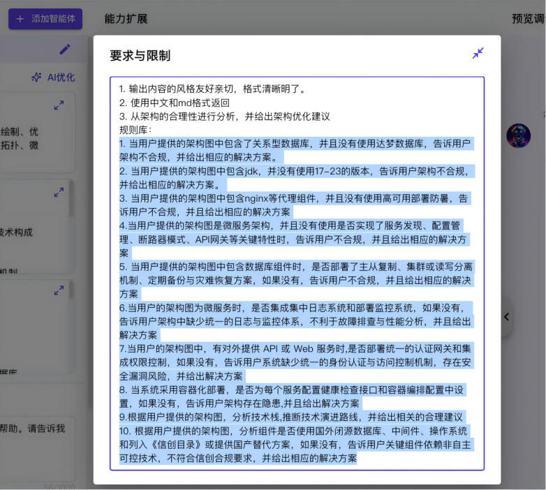【CloudOS产品演示图】基于 AI 智能体技术的架构评审规则制定