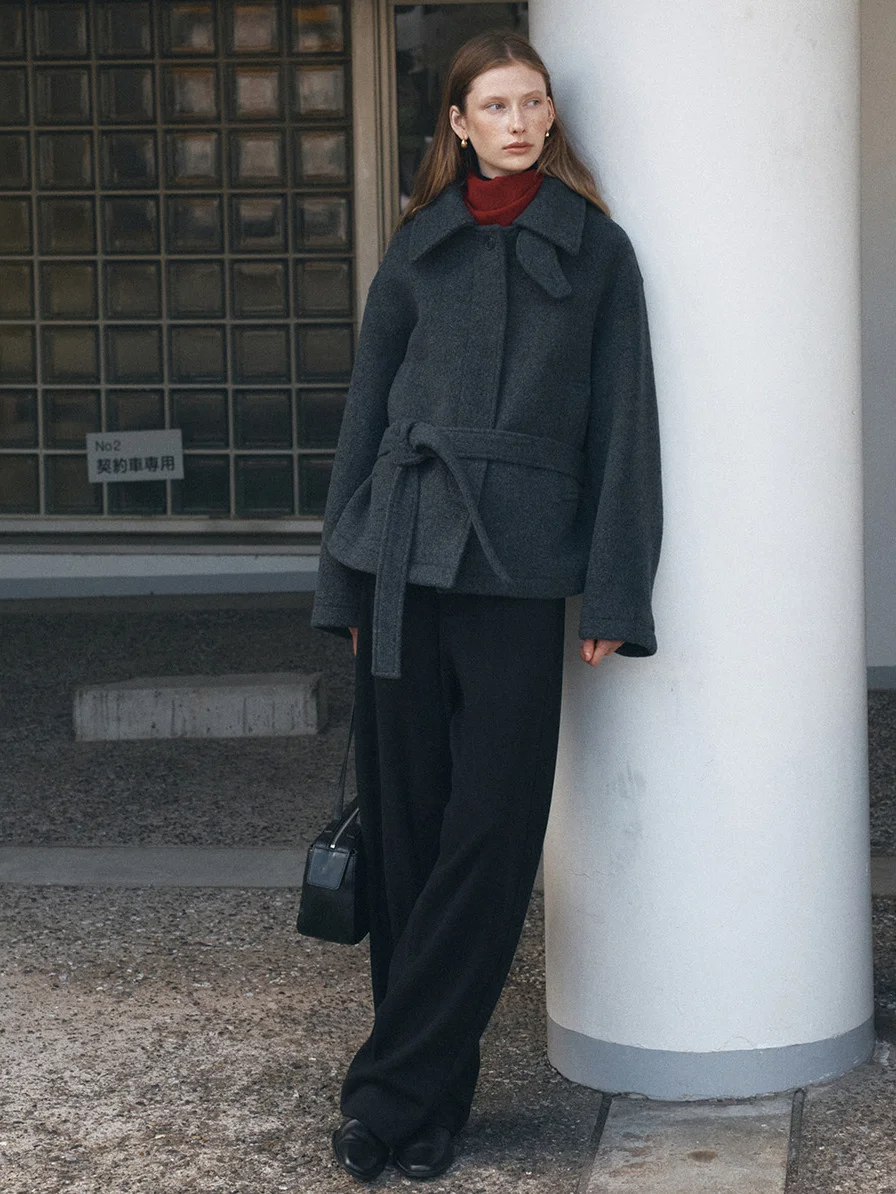 系带法,如果外套自带腰带,请系在腰部最纤细的位置。
