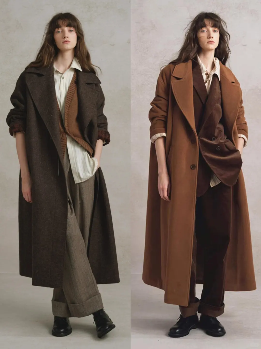 H型(直筒)大衣和A型大衣是叠穿的绝佳伴侣。它们流畅的纵向线条能完美消化内搭的厚度,并且自带显高显瘦的滤镜。