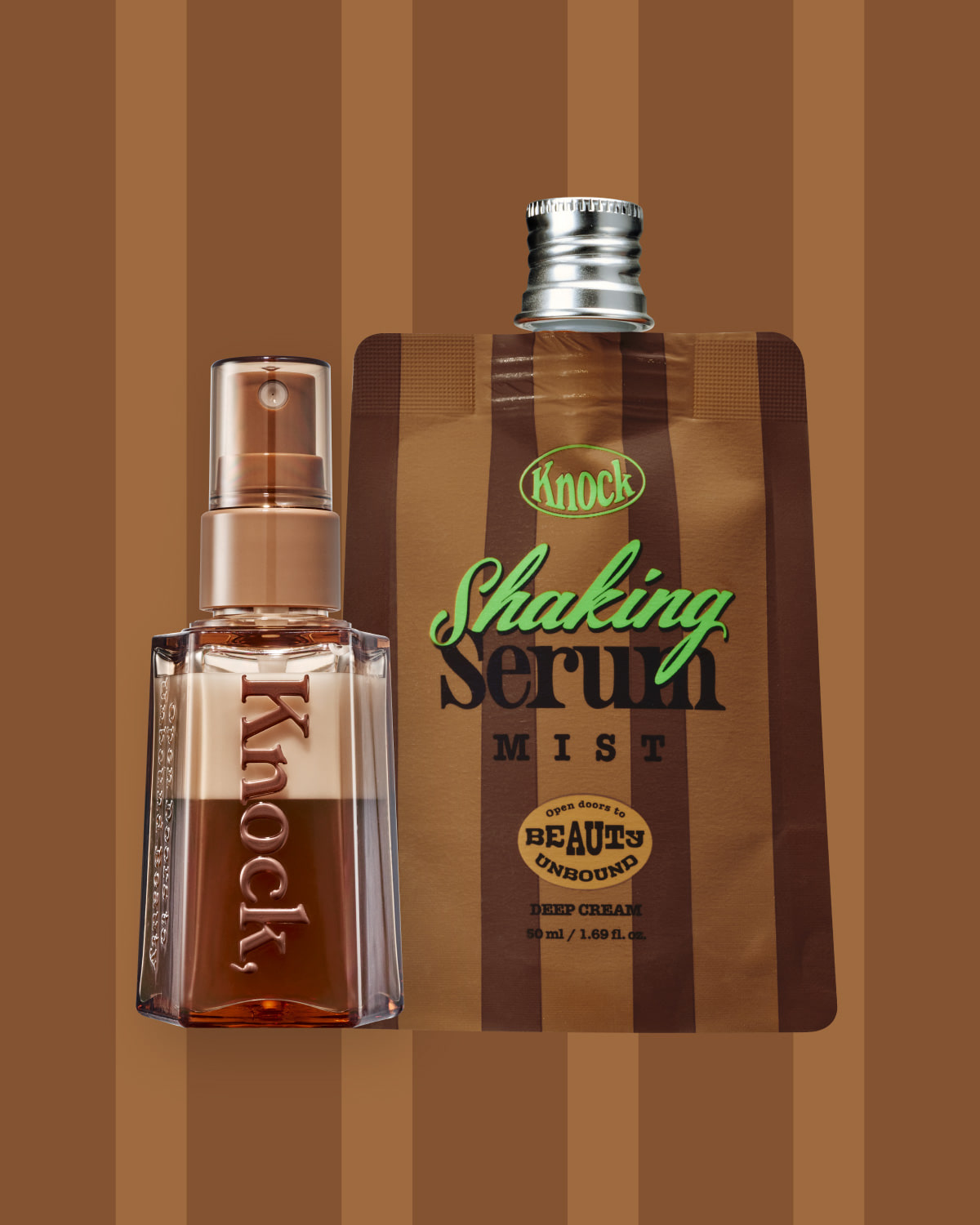 韩国美妆品牌 Knock 的套装包装设计,将 K-beauty 极简美学与产品核心卖点深度融合,成为品牌视觉符号的亮眼表达。整套包装以利落线条为基底,半透明瓶身搭配磨砂质感,既清晰呈现产品轻润质地,又透着低调高级感,避免多余装饰的设计,恰好呼应其 “清爽不黏腻” 的产品特质。