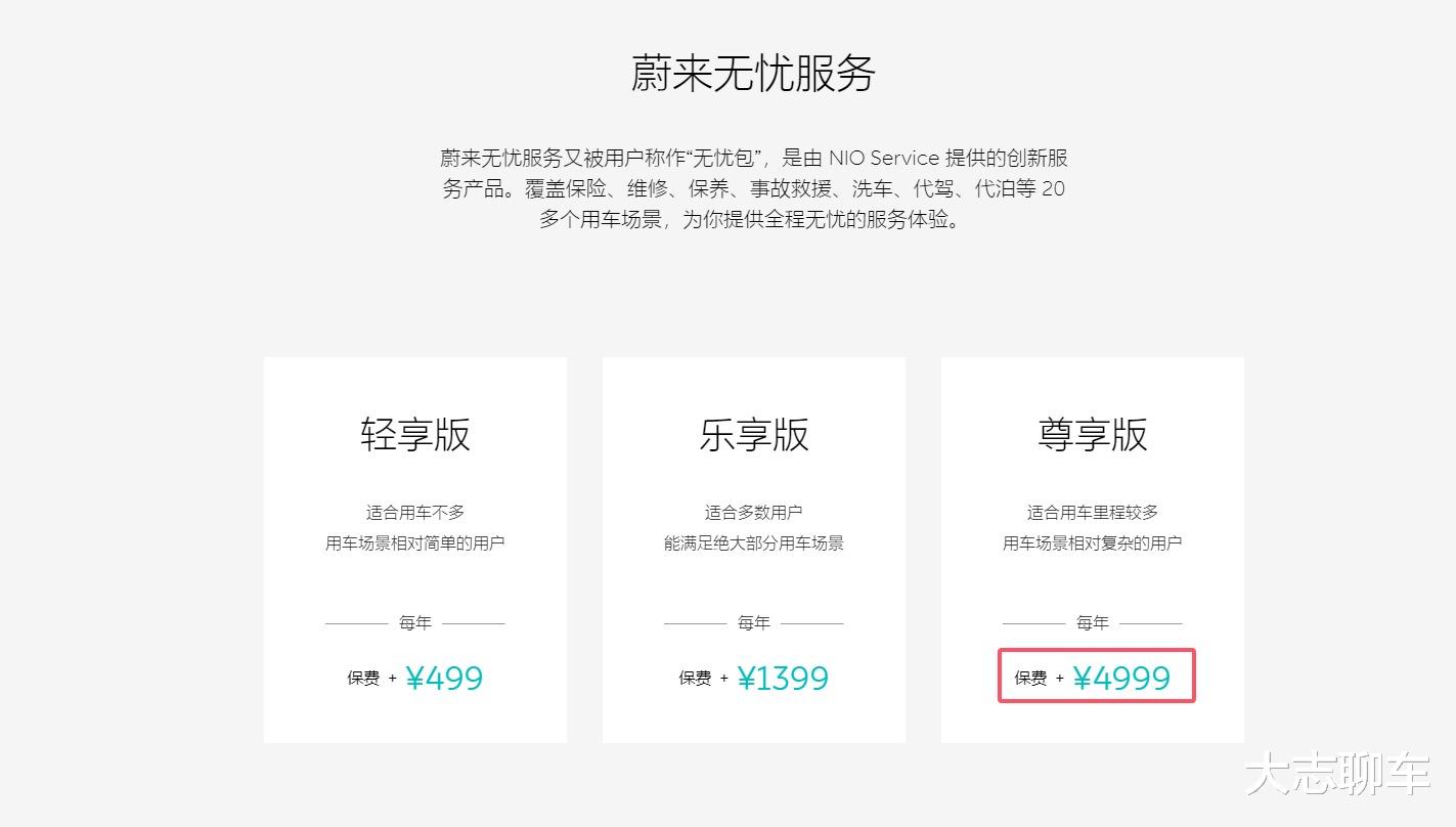 这时候,如果你不确定这个花销,其实还有一个办法,那便是选择买一下蔚来无忧服务,也就是无忧包,一年保费是4999元,考虑到后期有个返现800元,大概也就是4199元左右,这还少最贵的,最便宜的版本是499元,这个可以帮你降低一下用车成本我个人首先推荐你选择中间那个档位的,选择了这个,最起码能够降低你的用车麻烦和费用开支。