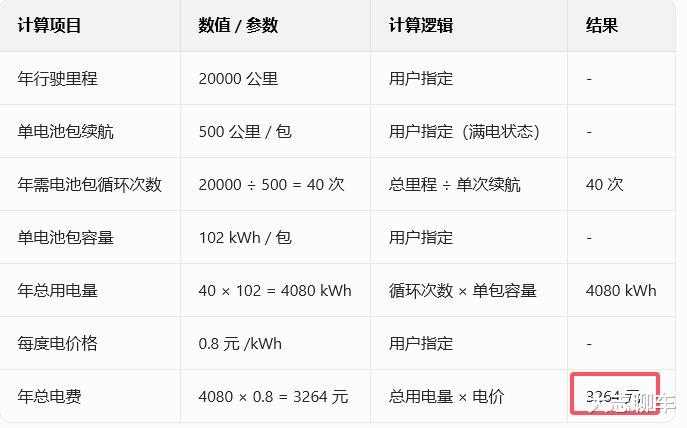 其次,用车成本,一年2万公里,按照蔚来ES8纯电续航638公里,就取更加实际一点的续航,500公里来计算,而一个电池包是102kwh,而不同时间段电费也不一样,就按照0.8元来计算,总续航除于实际续航,再然后×电池包容量,再乘以电费,我们就可以得出来3264元,考虑到一些车主喜欢冲12点后的电,那你就再这个基础上打个8折就行了。