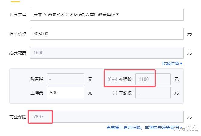 先说保险费,这个是最好算的,六座和七座的交强险是1100元,不出险第二年降到990元,当然,我们算的是第一年,而商业险全险是7897元,这里,如果你想便宜点,最好选择六座的,因为七座的车损险会贵一点,不过,也只是贵了一点点,影响也不是很大,主要还是取决于车主自己是怎么选择的。