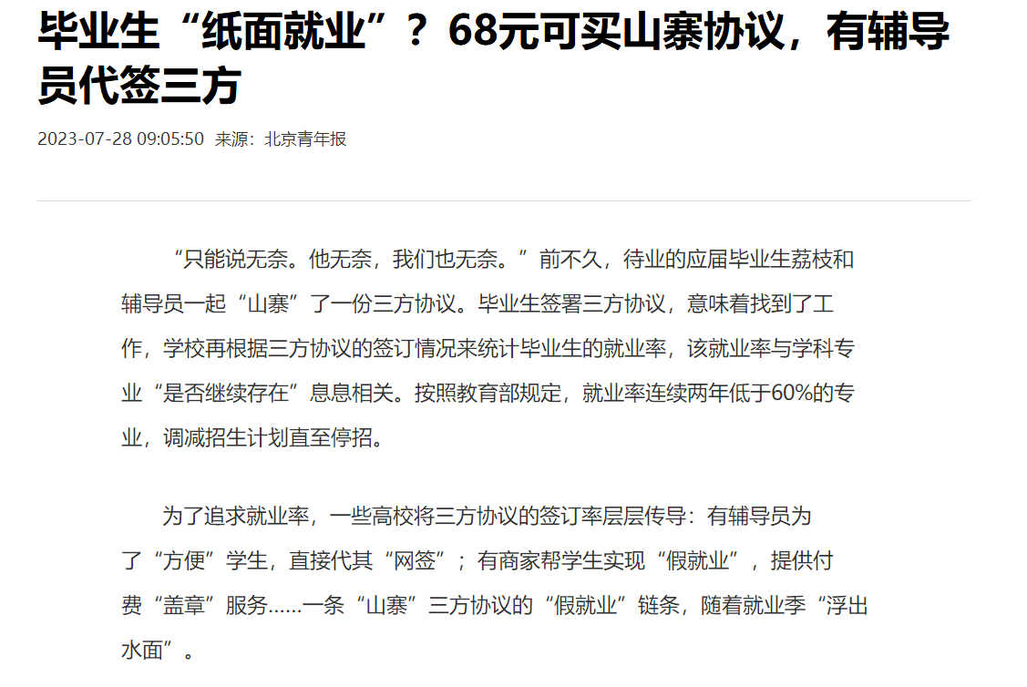 2023年,《北京青年报》曝光多起高校毕业生数据造假事件: