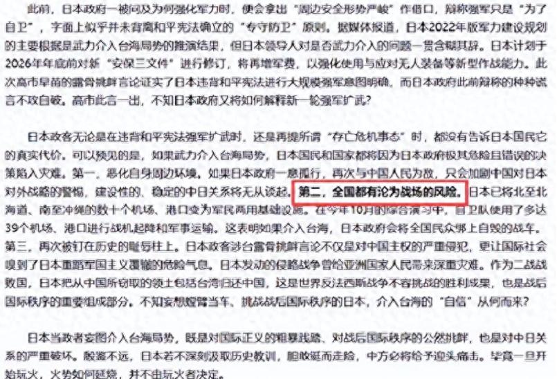注意这个词,“侵略”。这不是普通的外交抗议,而是把台海问题与日本的历史责任捆绑在一起,意味着一旦动手,中国绝不会只局限于台海作战,而可能启动对日本全面的历史清算。