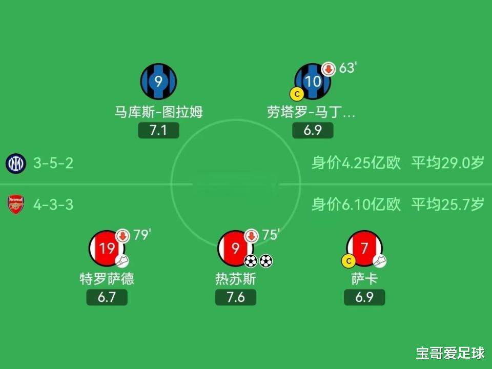 国米输给马竞是被对手在93分钟进球2-1绝杀,输给利物浦时被对手在第88分钟进球1-0绝杀,只有在对阵阿森纳时上半场就1-2落后,下半场更是毫无招架之力。这其中除了主教练齐沃的临场指挥经验欠缺以外,和球员在比赛最后阶段体力下降息息相关,而球员年龄过大更是一个不容忽视的原因,门将索默已经成为球队新任“射正王”,阿切尔比根本防不住热苏斯的冲击。